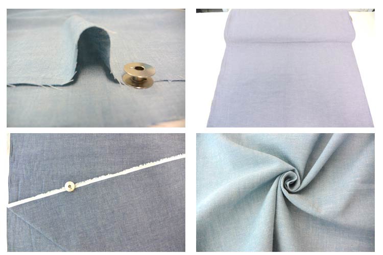 商品のご説明 【素 材】 綿85% 麻15% 先染め綿麻シャンブレー ※先染は糸から染めて織り上げる生地です。